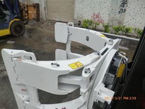 கிளாம்ப் என்பது ஃபோர்க்லிஃப்ட் இணைப்பு ஆகும், இதில் ஒரு சட்டகம், சட்டத்துடன் இணைக்கப்பட்ட ஒரு கை மற்றும் கையுடன் இணைக்கப்பட்ட சிலிண்டர் ஆகியவை அடங்கும். கைப்பிடித்தல் இடது மற்றும் வலது கைகளை உள்ளடக்கியது. சிலிண்டரின் ஒரு முனை இடது கையிலும், சிலிண்டரின் மற்றொரு முனை வலது கையிலும் இணைக்கப்பட்டுள்ளது. இடது கை மற்றும் வலது கை எண்ணெய் உருளை மூலம் திறக்க மற்றும் மூடுவதற்கு கட்டுப்படுத்தப்படுகிறது. முதல் இணைப்பியில் கீல் புள்ளியின் இடதுபுறத்தில் குறைந்தபட்சம் ஒரு முதல் வரம்பு துளை அமைக்கப்பட்டுள்ளது, மேலும் இரண்டாவது இணைப்பானது கீல் புள்ளியின் வலதுபுறத்தில் குறைந்தபட்சம் ஒரு முதல் கட்டுப்படுத்தும் துளையுடன் வழங்கப்படுகிறது. இடது கை மற்றும் வலது கையின் மூடும் கோணத்தை கட்டுப்படுத்தும் முதல் கட்டுப்படுத்தும் கூறுகளுடன் முதல் கட்டுப்படுத்தும் துளை செருகப்பட்டுள்ளது, இது கிளாம்பின் குறைந்தபட்ச கிளாம்ப் கோணத்தைக் கட்டுப்படுத்தவும் மற்றும் இடது கை மற்றும் வலது கை மோதலைத் தடுக்கவும். ஹோல்டிங் கிளாம்பில் முதல் வரம்பு துளை உள்ளது, இது இடது கை மற்றும் வலது கையின் மூடும் கோணத்தை மட்டுப்படுத்தலாம், இதனால் கிளம்பின் குறைந்தபட்ச கிளாம்பிங் கோணத்தை கட்டுப்படுத்தலாம் மற்றும் இடது மற்றும் வலது கை மோதுவதை தடுக்கலாம். பின்னர் அது சிறிய பொருட்களை இறுக்க முடியும். கட்டமைப்பு எளிமையானது, செயல்பட எளிதானது மற்றும் வலுவான நடைமுறை உள்ளது.